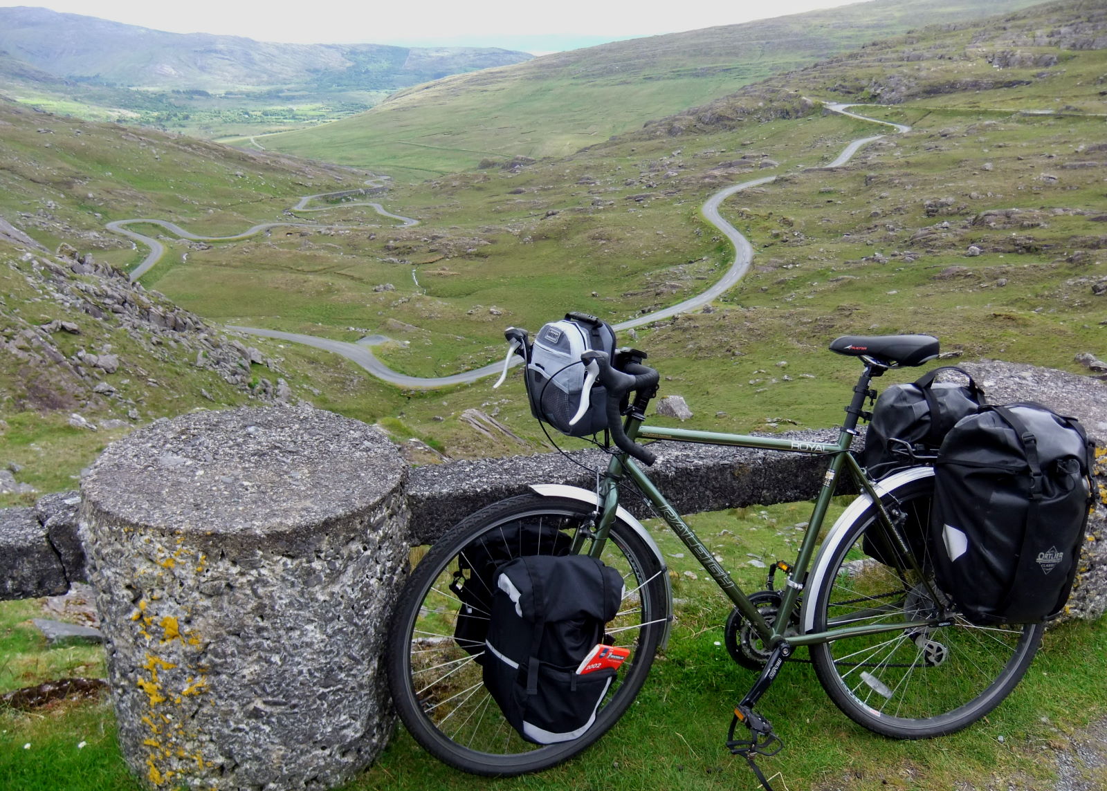 The scenery was rather fab, very reminiscent of my 50th birthday present to myself last year: Cow Pass, Britain’s longest steep hill, vaulting its way from Lochcarron to Applecross in Scotland. The view back down from top of Healy Pass (pic) was similar: a tarmac squiggle, as if one of my nonexistent grandchildren had scribbled on the map with a road-coloured crayon.