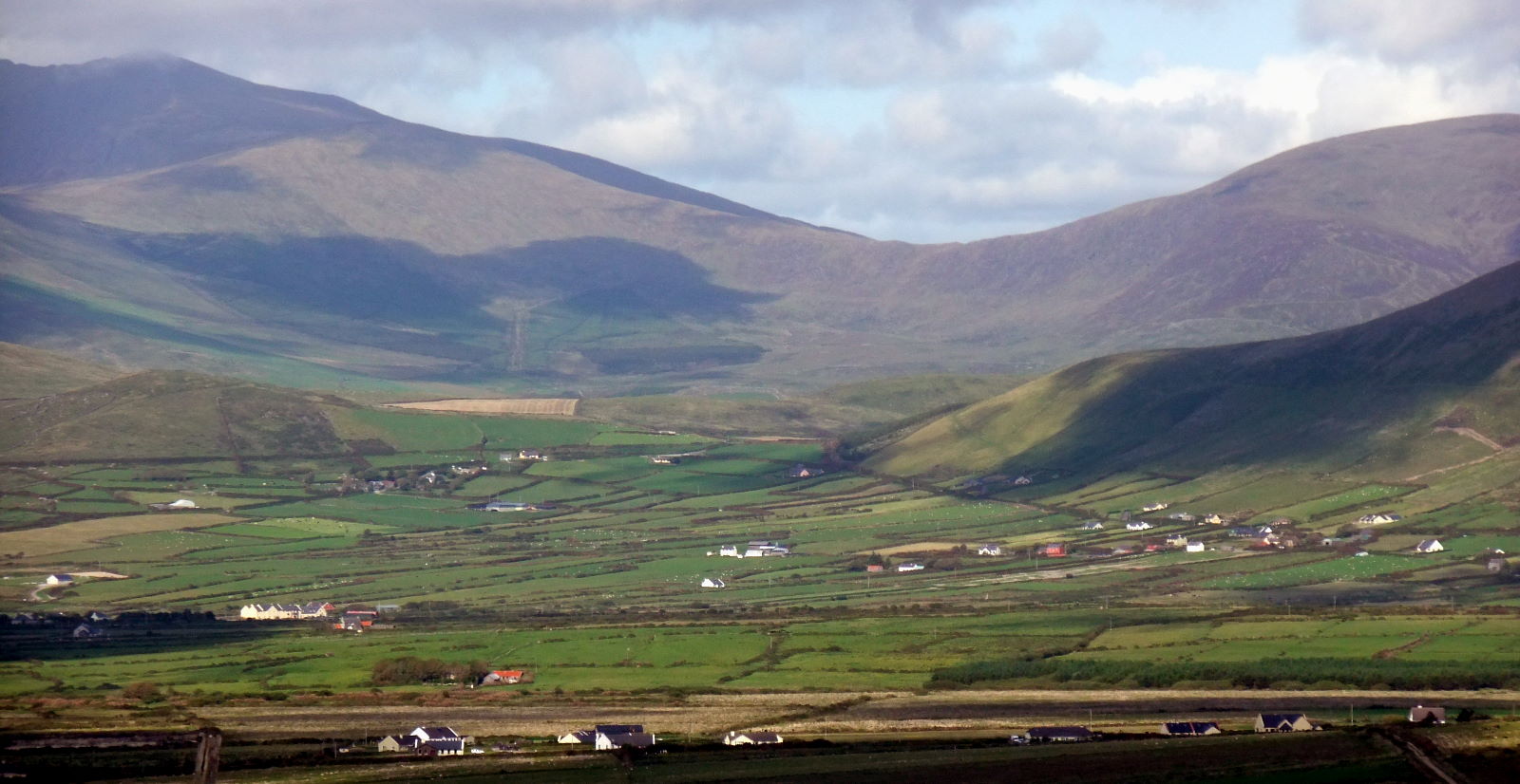 We finished with a struggle into the northerly headwind, and a short cut back over the mountain with lovely views from the top (pic). The hurtle downhill was a long straight delight, with Kerry and the deep blue waters ahead of us, the unfolding lush green valley down on our right.