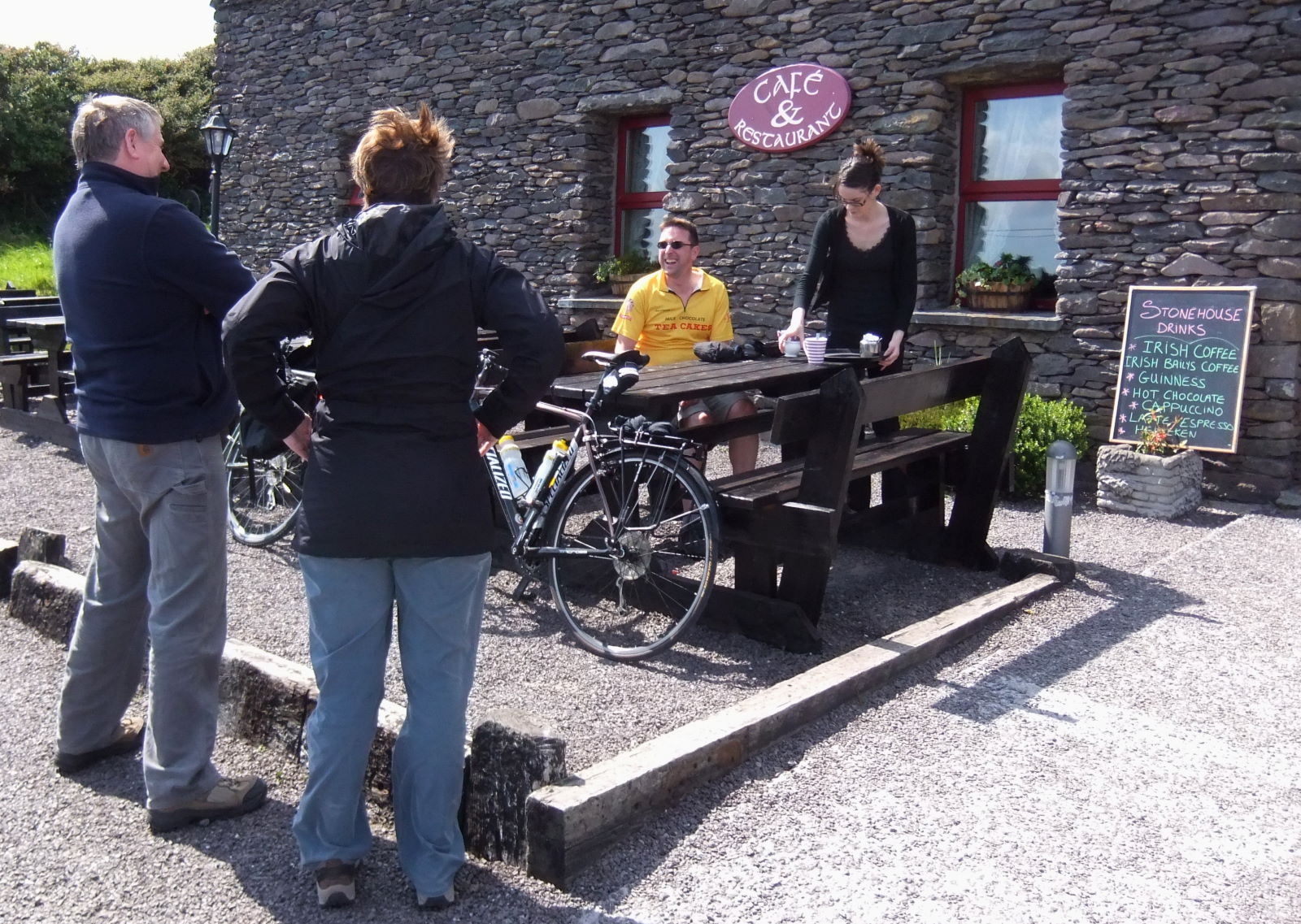 The world is split into two types: those who can be put into one of two types, and those who can’t. Well, we split into two groups this morning. I cycled with Si 40-odd miles to the hostel at Dingle to check in, and then do a circuit of the peninsula end; Sue, Paul and Chris went a different way to Dingle, via Dunloe Gap.