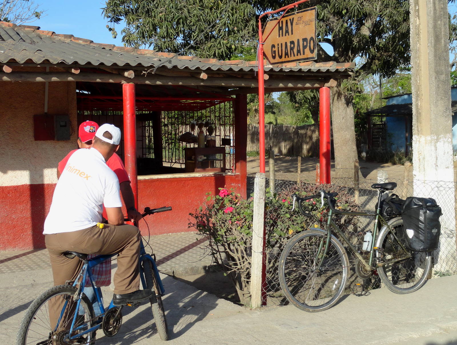Another long but lovely sunny day of mile-eating on the Carretera Central, and fruit-juice-drinking at kiosks en route (pic) to ensure my five a day. Their menus now include guarapo (sugar cane) and pineapple juice, and it doesn’t come out of bottles.