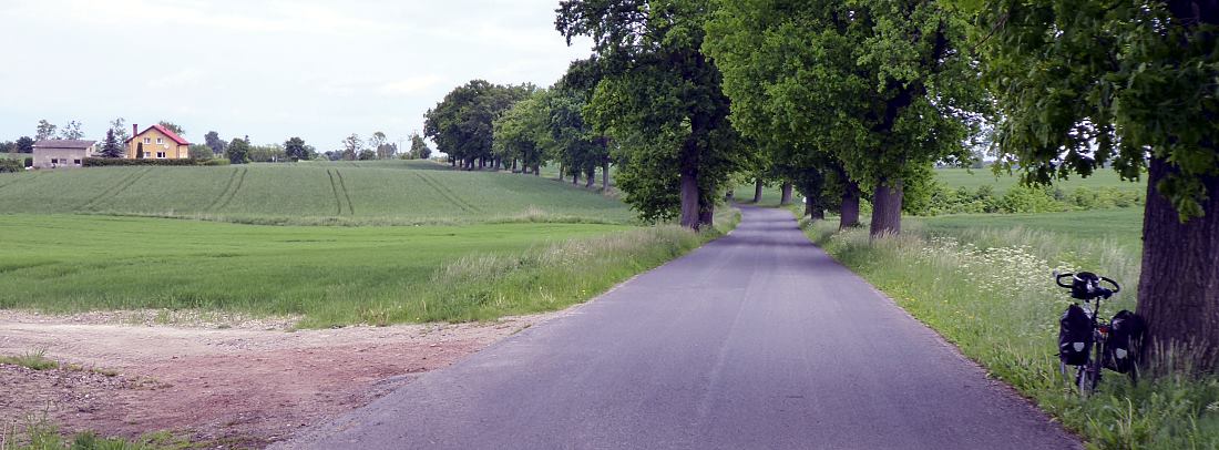 Most of today was again easy, pleasant riding through very gently undulating landscape (pic). And, again, it put me in mind of eastern England. Perhaps that’s why there are so many Polish fruit-pickers and vegetable-harvesters in East Anglia, round Boston say. They must feel at home, particularly with so little to do in the evening.