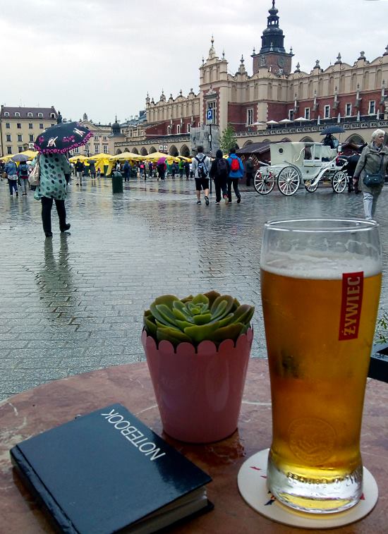 It was chucking it down when I arrived, so the only sensible option was my usual arrival strategy: a pricey but unmissable pint of Żywiec (pronounced as it’s spelt) in a bar overlooking the main square, watching the tour groups and horse-drawn carriages, and listening out for the hourly trumpet call from St Mary’s Church (pic).
