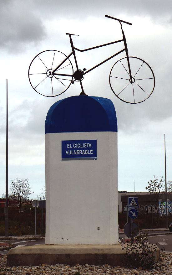 Anyway, Jerez makes its attitude to cyclists clear with some half-decent cycleways and cycle-priority streets, and this spindly but assertive monument on a roundabout on the way in (pic).