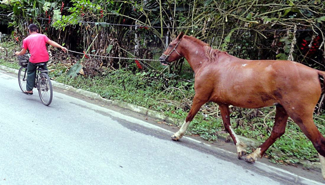 …and surrounding countryside, where I saw something I’ve never seen before: a man taking his horse for a walk by bike (pic).