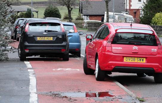 East out of Stafford town centre this morning. Luckily there was a nice wide cycle track on the pavement (below).
