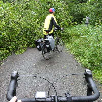 When it’s not climbing up or plunging down 1 in 4 hills on breathless back lanes, much of the route goes on railtrails. Dr Beeching was clearly a fan of leisure cycle routes, to judge by how many rural rail lines he axed to create them, though he appears to have axed a few trees too (above).