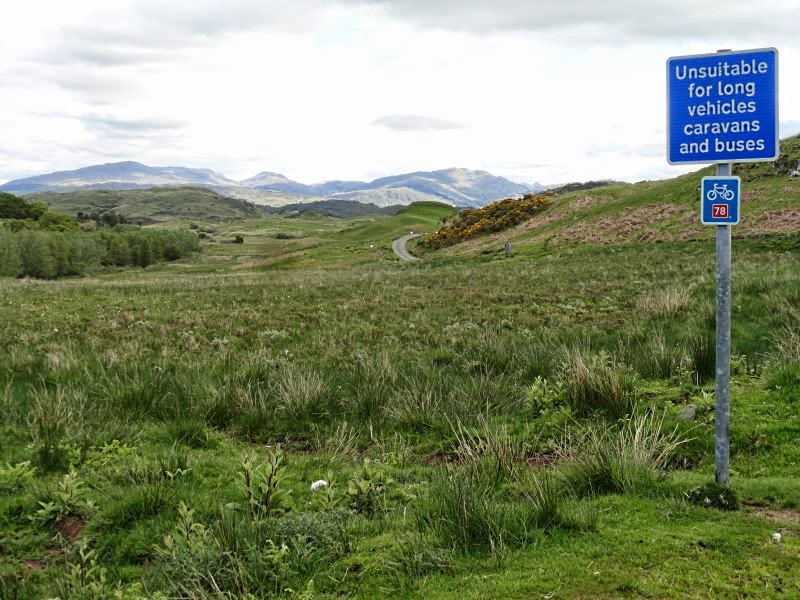 Another gorgeous day of fine weather and stunning scenery. I was ignoring Sustrans Route 78 for most of it, but I inadvertently followed it out of Oban (picture): a 12-mile slog into a headwind over hilly pasture.