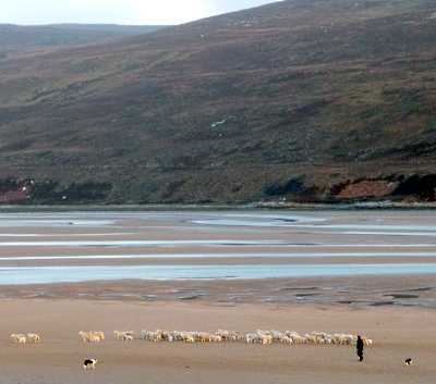 But I was rewarded by this sight of a Durness shepherd and two collies taking some sheep out on to the beach. I didn’t know sheep enjoyed a day at the seaside. So that’s what they do on their day off.