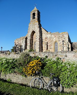 Shortly after Wooler, the grey day turned into a glorious sunshine evening for my ride across the causeway to Holy Island (picture). The refuge is for people who get caught by the tide who then have to spend the night cramped with other people in a bare wooden box. Now they know how hostellers feel.