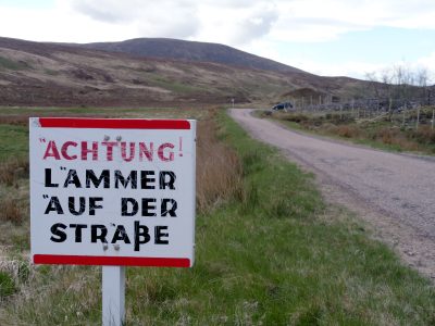 Anyway: the panic story. Five miles further up the A836, just after seeing this sign – evidently the sheep are flummoxed by the Germans driving on the wrong side of the single-lane road – I suddenly realised, in a cold sweat, that I had lost my wallet. Had I left it in the pub? Had I put it on top of my panniers and rode off, in which case it could have fallen off anywhere…?