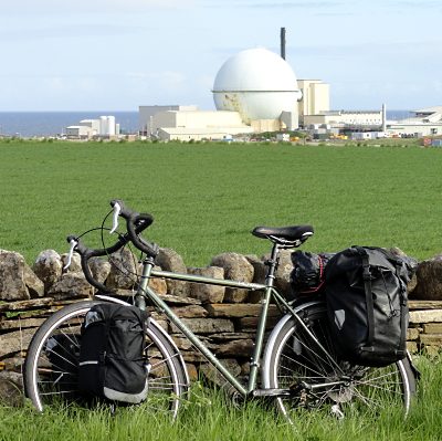 From Melvich I passed Dounreay, site of the famous fast breeder (picture). Obviously, I wore a radiation suit for cycling. After all, can’t do any harm, and cycling is DANGEROUS, and the fact that the suit split after I passed the reactor PROVES IT SAVED MY LIFE. I think radiation suits for cyclists should be compulsory. And wearing the suit stopped people seeing I don’t wear a helmet.