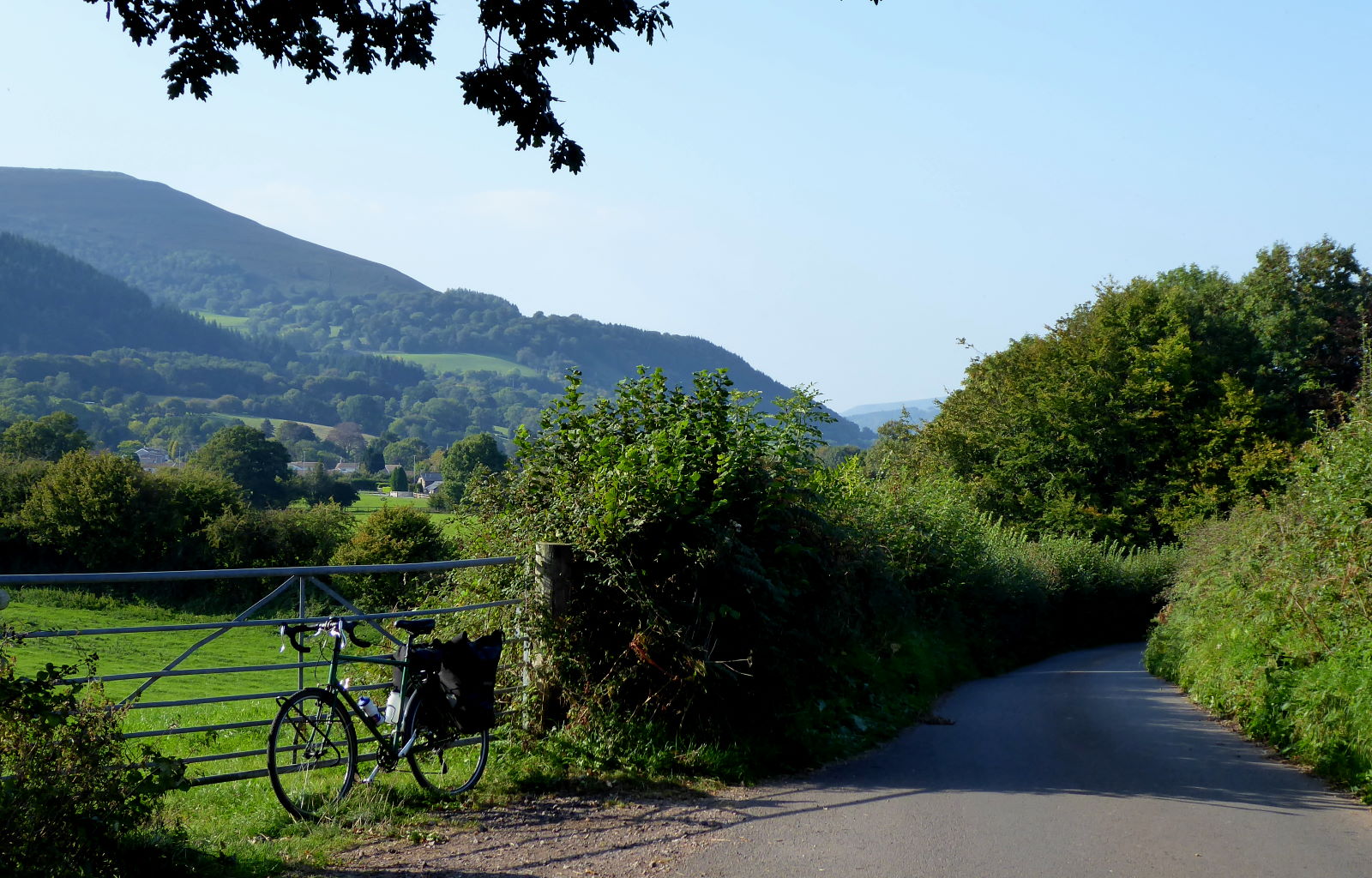 More charming, untrafficked back lanes (pic) took me northwest to Abergavenny, where I’d scored a bargain Premier Inn room. I’d done barely thirty miles, but in today’s summery heat, I definitely needed a shower.