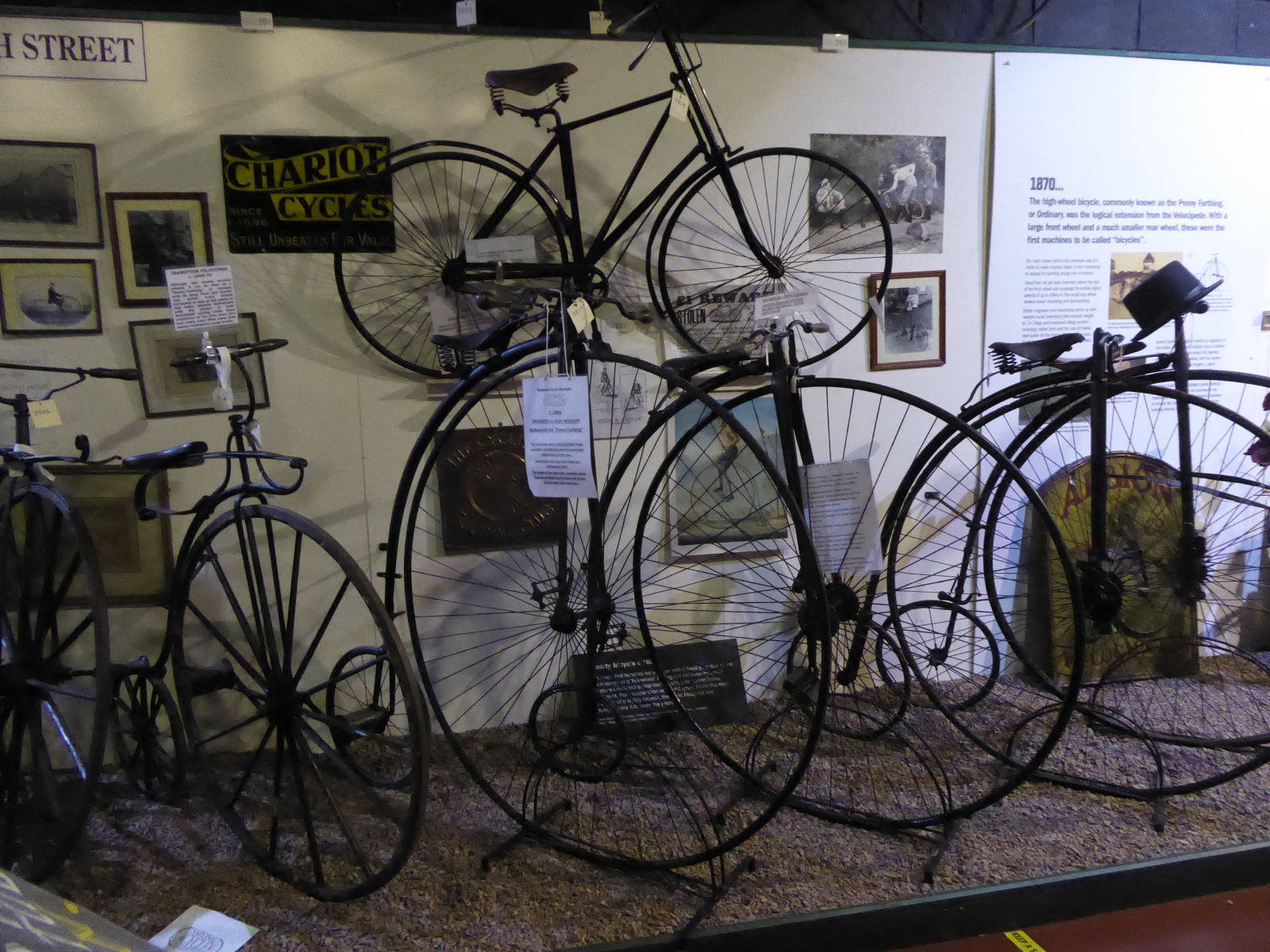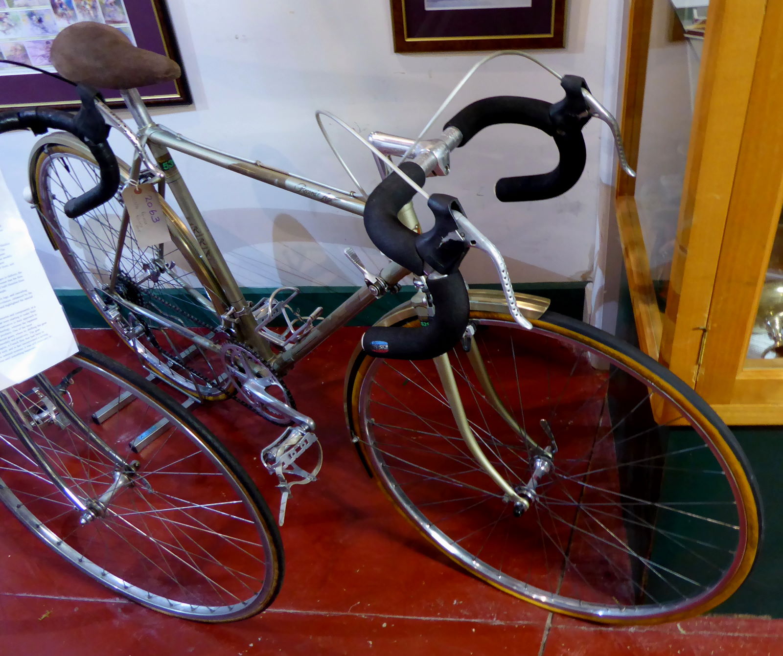 And the contents are even more impressive. The handful of rooms on the ground floor are crammed full of bikes, bits and memorabilia of all kinds from the velocipede era to the 1990s (pic). There are unusual Ordinaries, antisocial Sociables, dangerous Safeties: there’s even a bike made out of a bedstead.