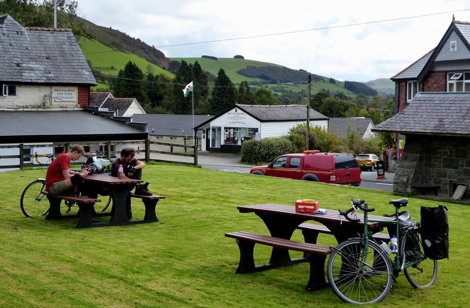 Anyway, more delightful back-lanes riding got me to Llanidloes. Here I had a sunny lunch on the green (pic) alongside some socially-distanced other riders doing the LLC. Despite what I said earlier, my lunch was quite nice.