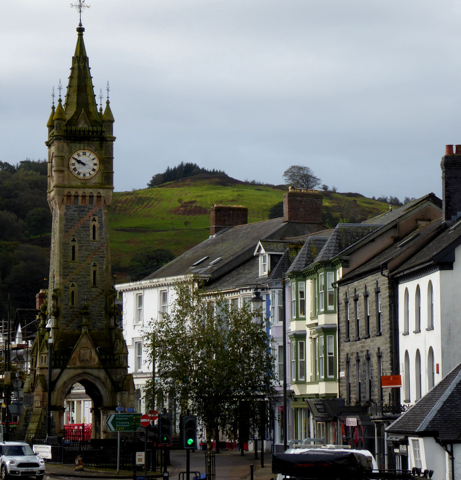 It was a downhill whoop into Machynlleth (pic). I searched for the famous landmark called Y Cloc, but obviously that’s Welsh, so I couldn’t understand what to look for.