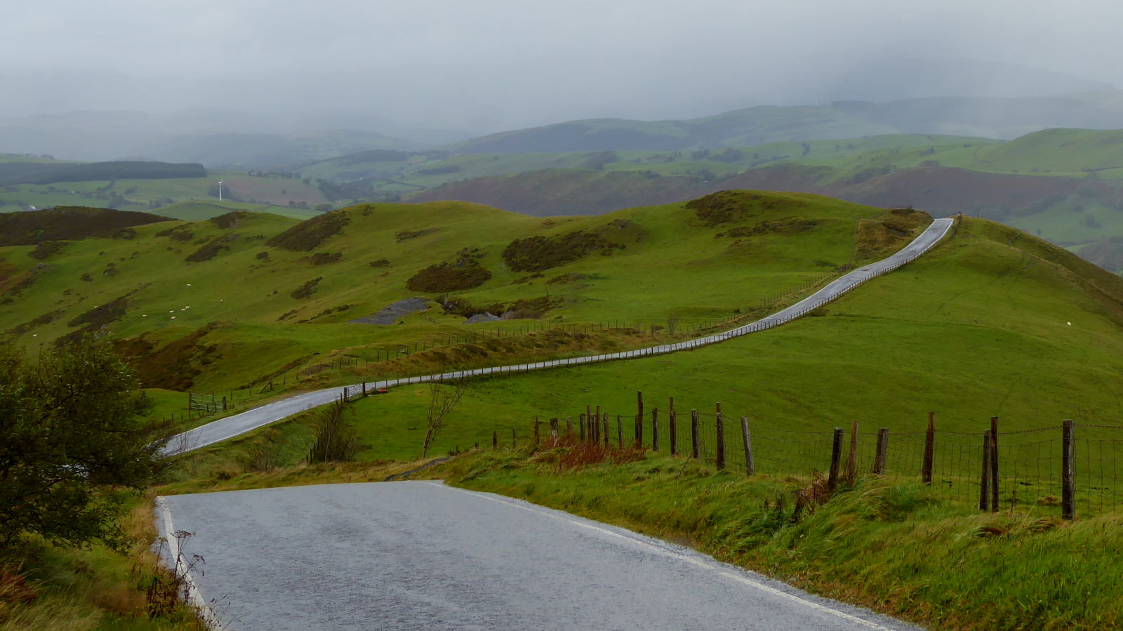 It was rainy today too, but visibility was OK (pic), and I got a strong impression of the hillscape’s sweep and breadth. I also got a strong impression of wet socks and squelching shoes.