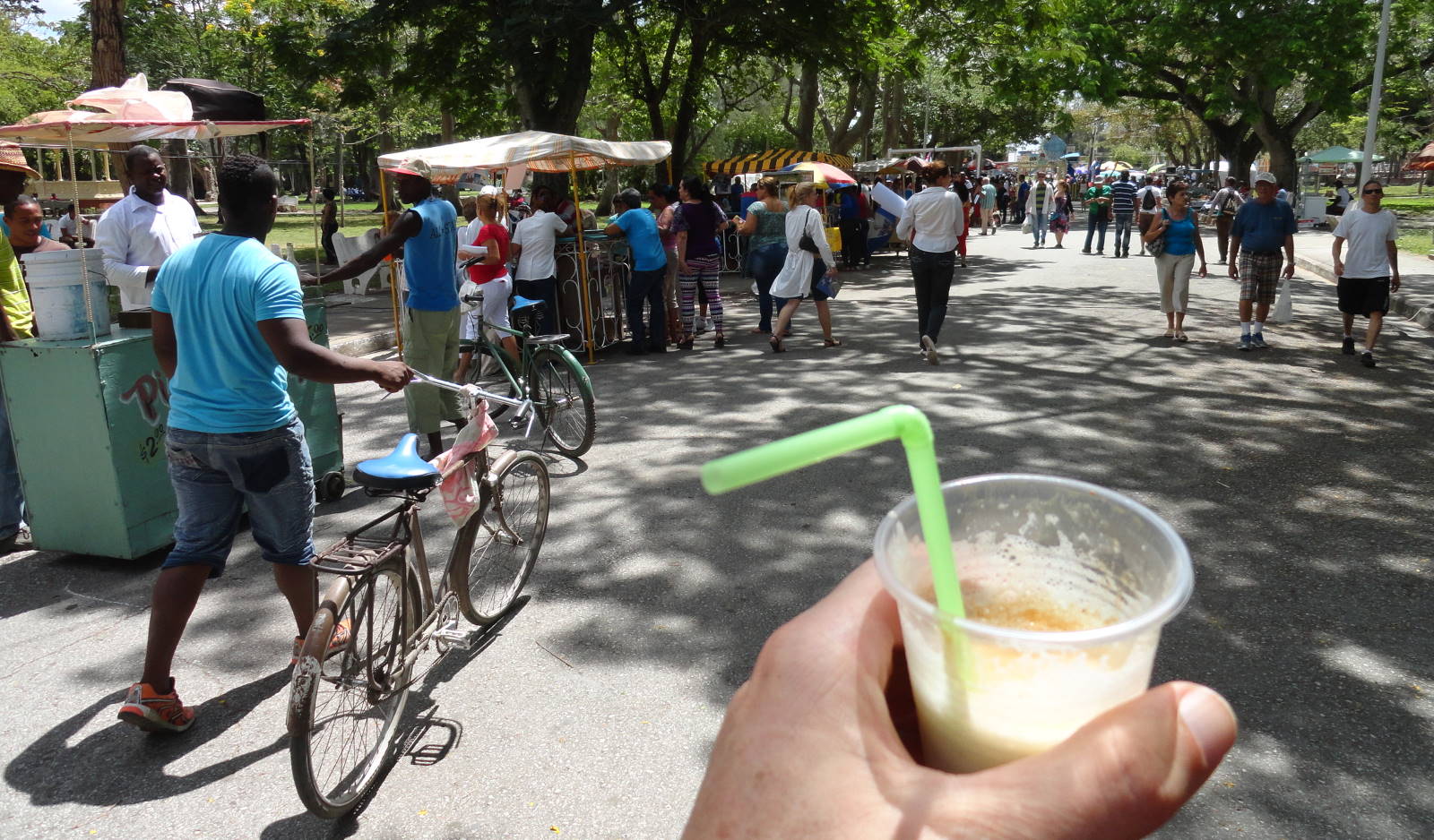 As usual I rode dawn-to-noon to avoid the afternoon heat, and arrived at Camagüey ready for lunch. At the Campesino, where a small but lively fair was taking place, I had a five-peso pina colada (pic) instead. I chatted to a couple of happy-looking families mildly curious about my laden bike. Sometimes Cuba just seems the nicest place in the world.