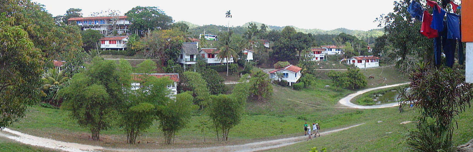 I cycled past the Romanesque Ancient Coffee Plantation Monument (pic) and into the Reserve of Las Terrazas. In contrast to the featureless plains of central Cuba, this was all beautiful mountain and hill scenery scenery, winding lanes, twittering birds, and beautiful happy riding.