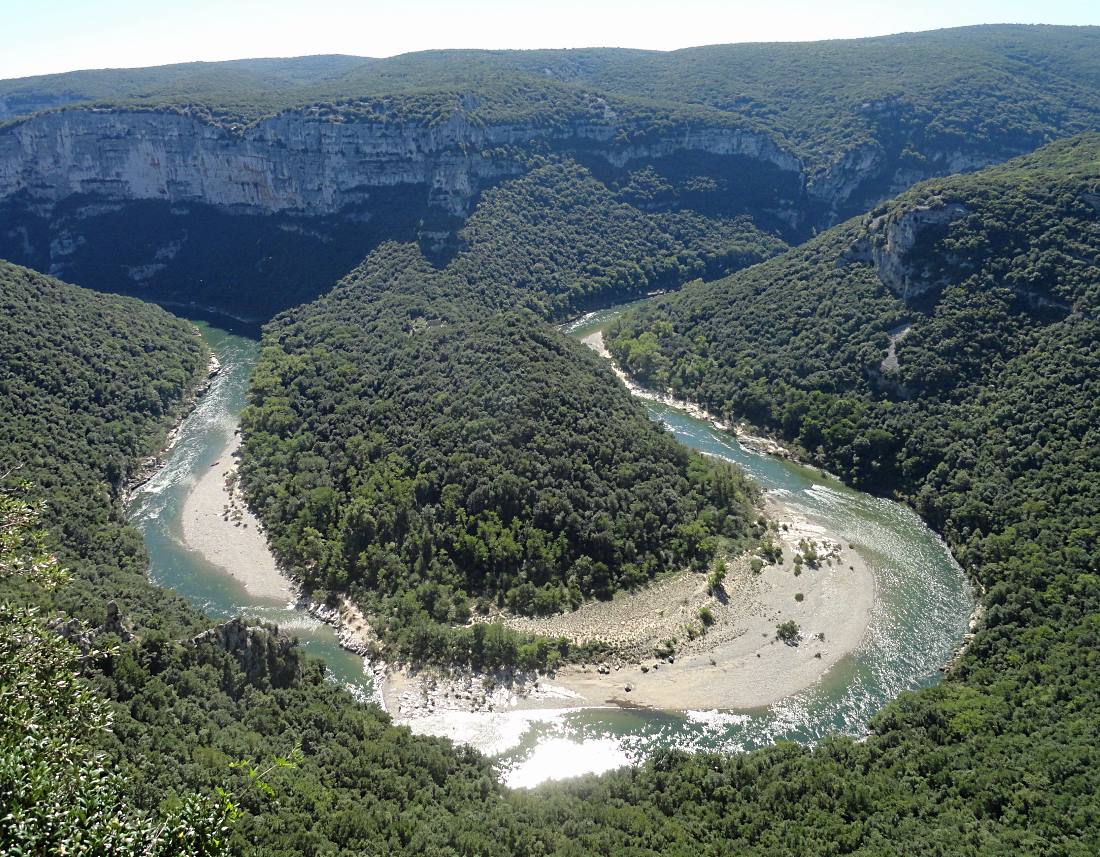 From here was an annoyingly up-and-down road overlooking the Ardèche and its many sinuous bends (pic). I couldn’t help thinking wistfully of 16 years ago, when I canoed this stretch with someone I love. Lots of water under the bridge since then, but luckily I’m insured for that.