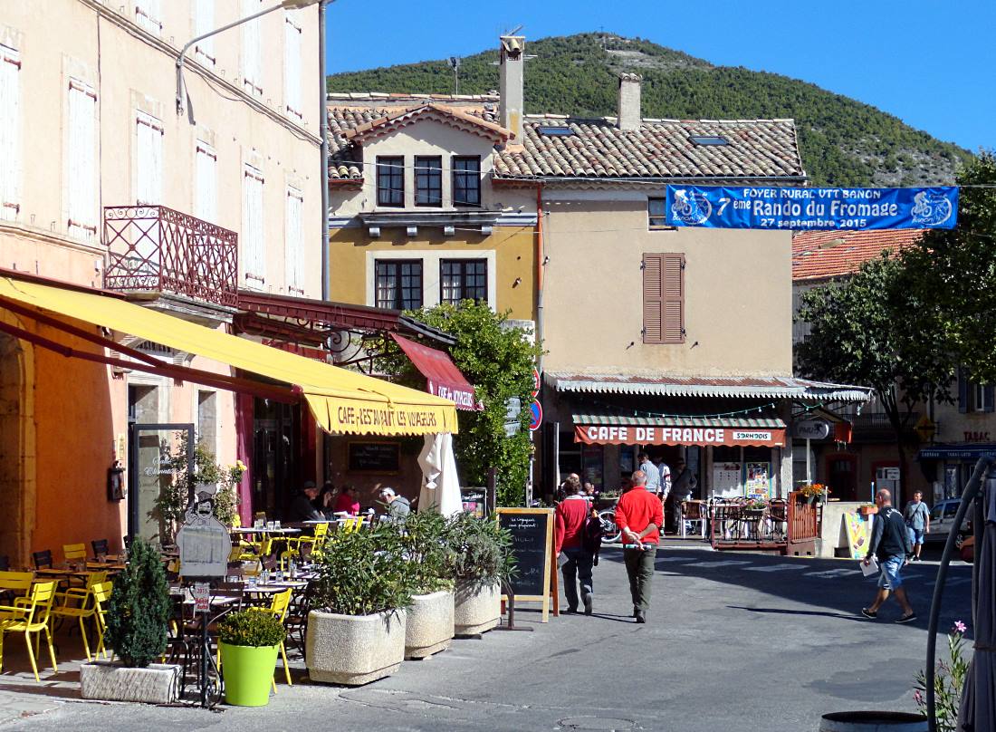 Lunch was in Banon (pic), a lively provençale small town with lots of cafes and, bizarrely, France’s fifth-biggest bookshop, Le Bleuet. I looked to see if they had a copy of Bluff Your Way in Cycling in amongst their 150,000 titles in stock. They didn’t.