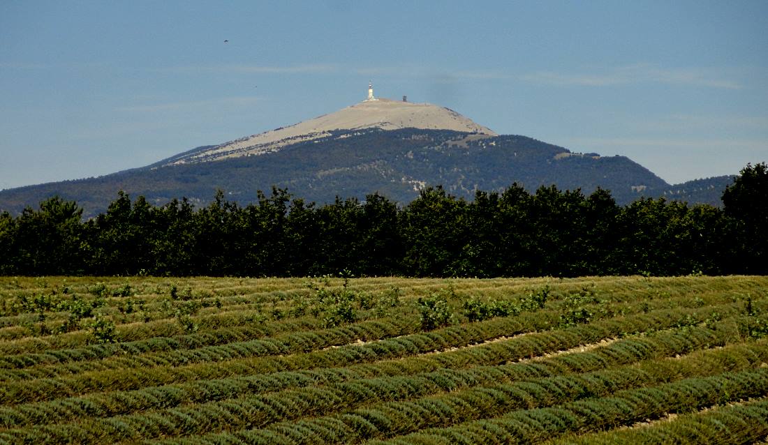 Heading east out of Sault, I got my last look at Mont Ventoux (pic). Here, looming over the lavender fields, it actually looks more like the isolated big climb that it feels, than it did from Sault.