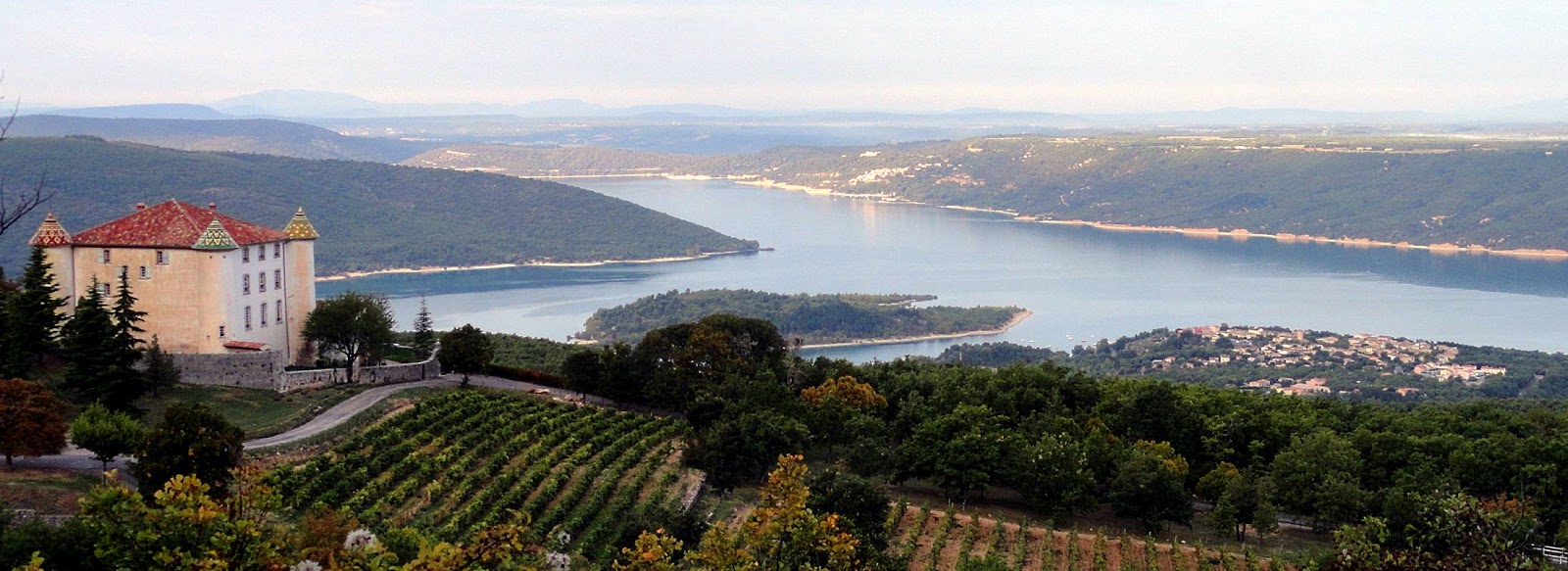 The early morning ascent to Aiguines gave me a view back over the town of Les Salles, where I spent last night (pic), and Lac Ste Croix beyond. It’s amazing how a patisserie pain au chocolat and slug or two of coffee can power you up these mountainsides. And I still had a raspberry cream custard sponge cake thing in reserve.