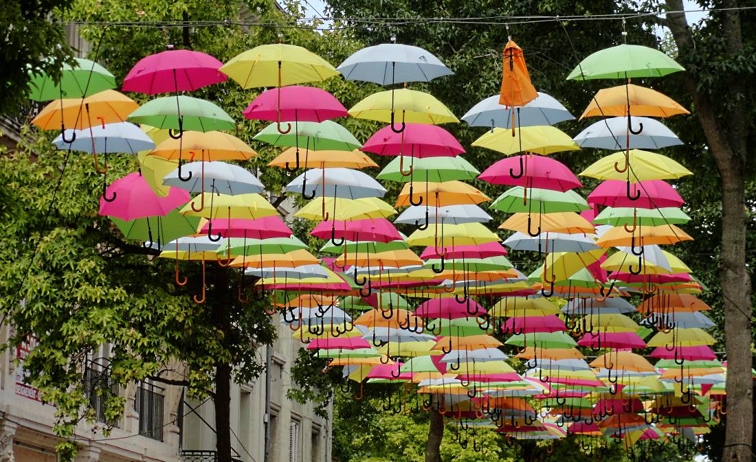 Saumur centre-ville also boasted this eye-catching display of umbrellas above one street (pic). No idea what’s going on, but I certainly approve.