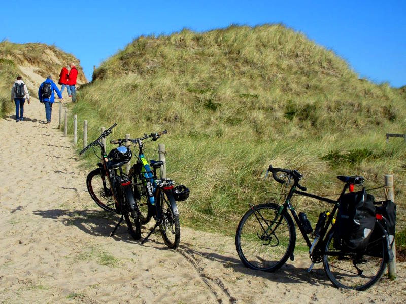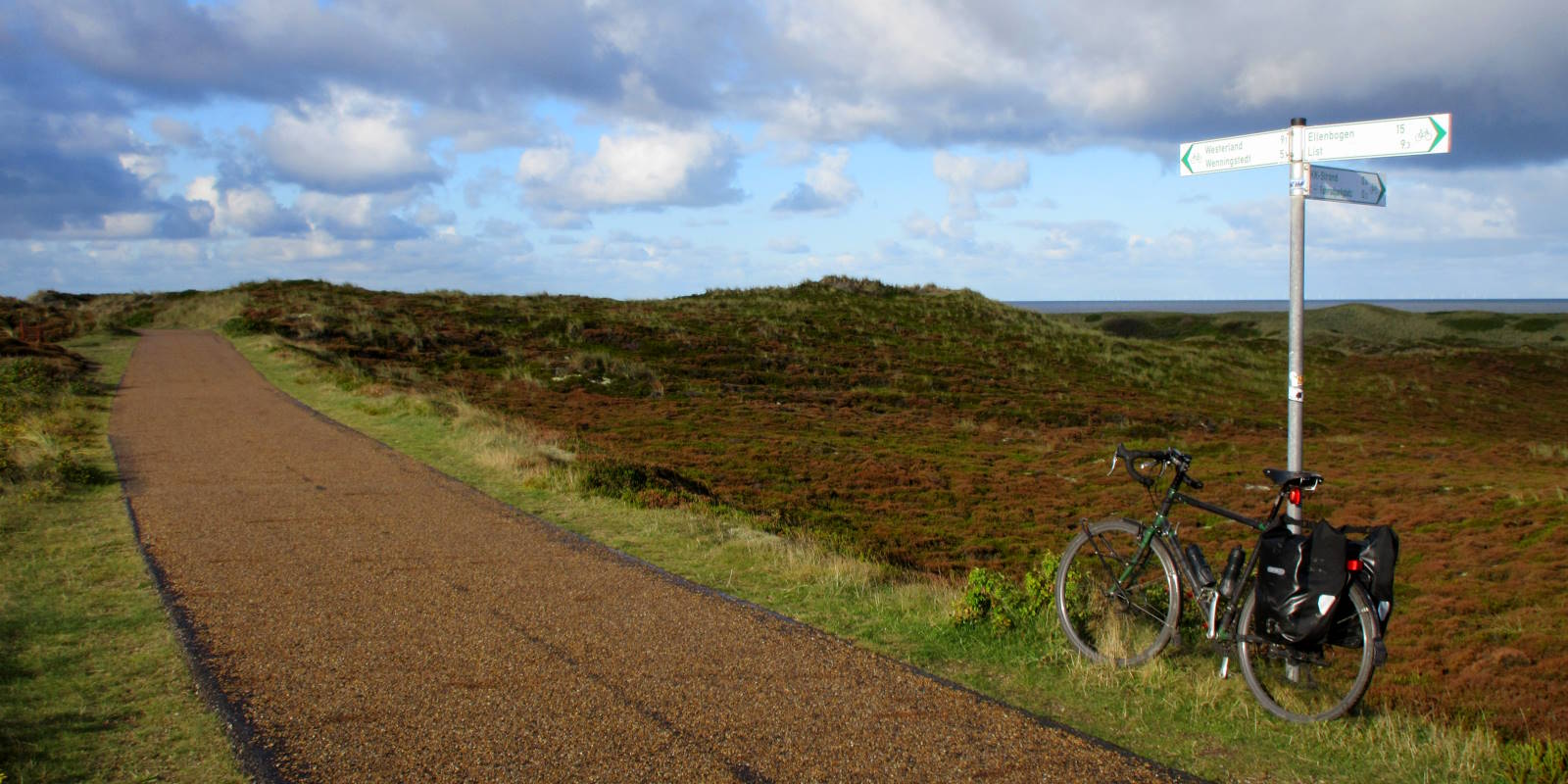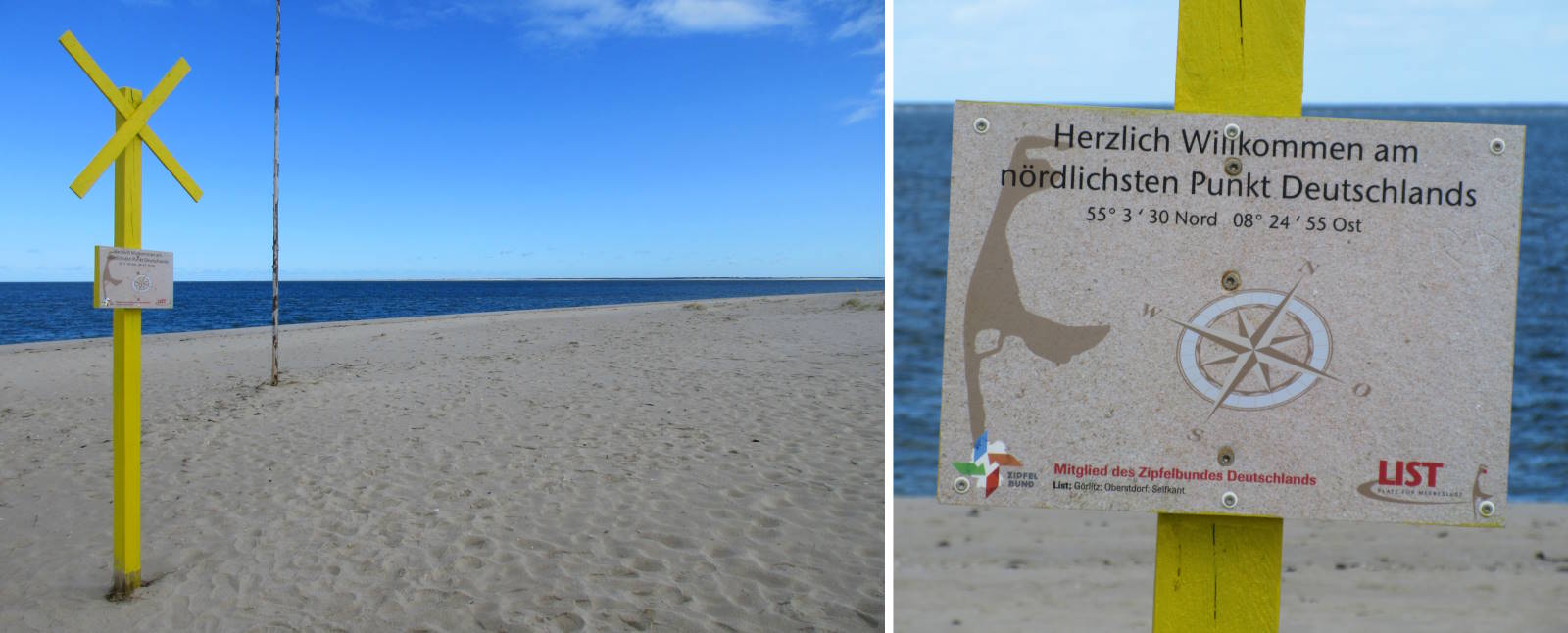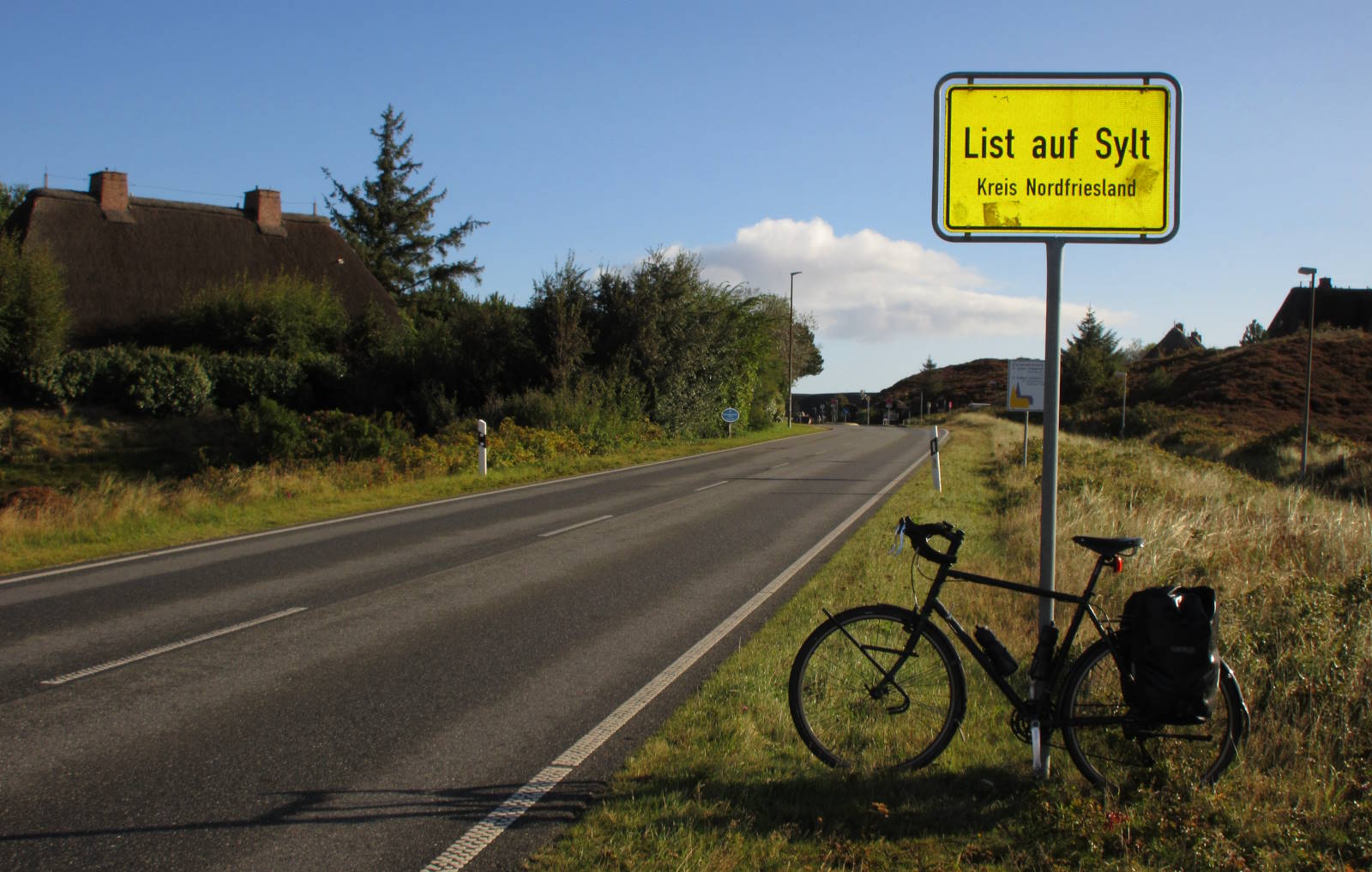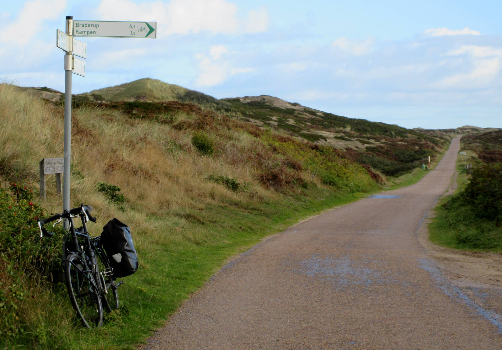 At Ellenbogen I could swish past the toll booth where cars have to stop and pay, and rode a kilometre or two up towards to the Northernmost Point. You can only get your bike so far before you have to leave it at a parking spot; it’s another kilometre or so on foot from here through some dunes and along the beach to the sign for the point itself.