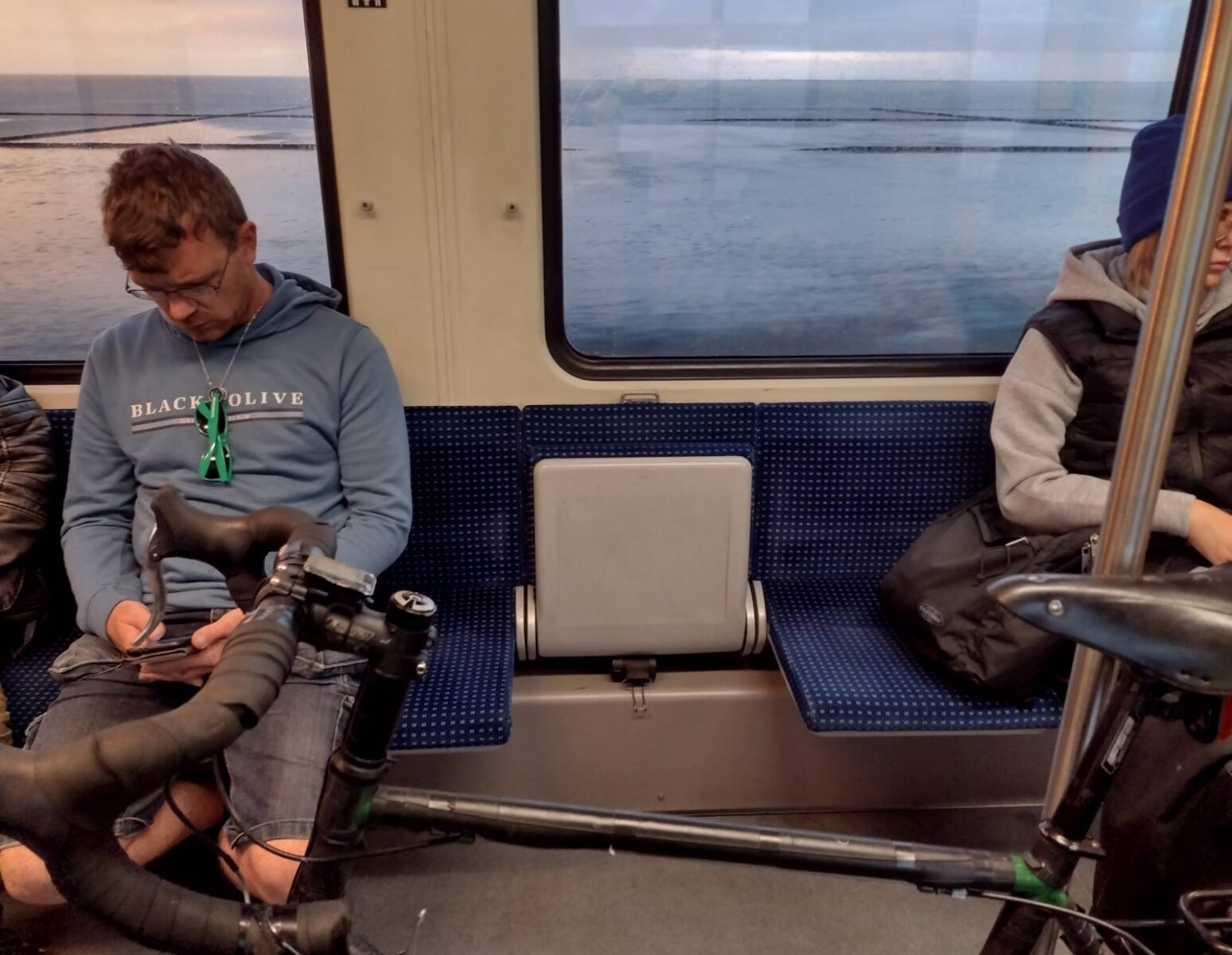 Irritatingly, the tip-up seats where bikes were supposed to go were occupied – despite there being plenty of vacant standard seats nearby – by grubby people on their way to work gawping at their mobiles. Even more irritatingly, I couldn’t be bothered to ask them to move.