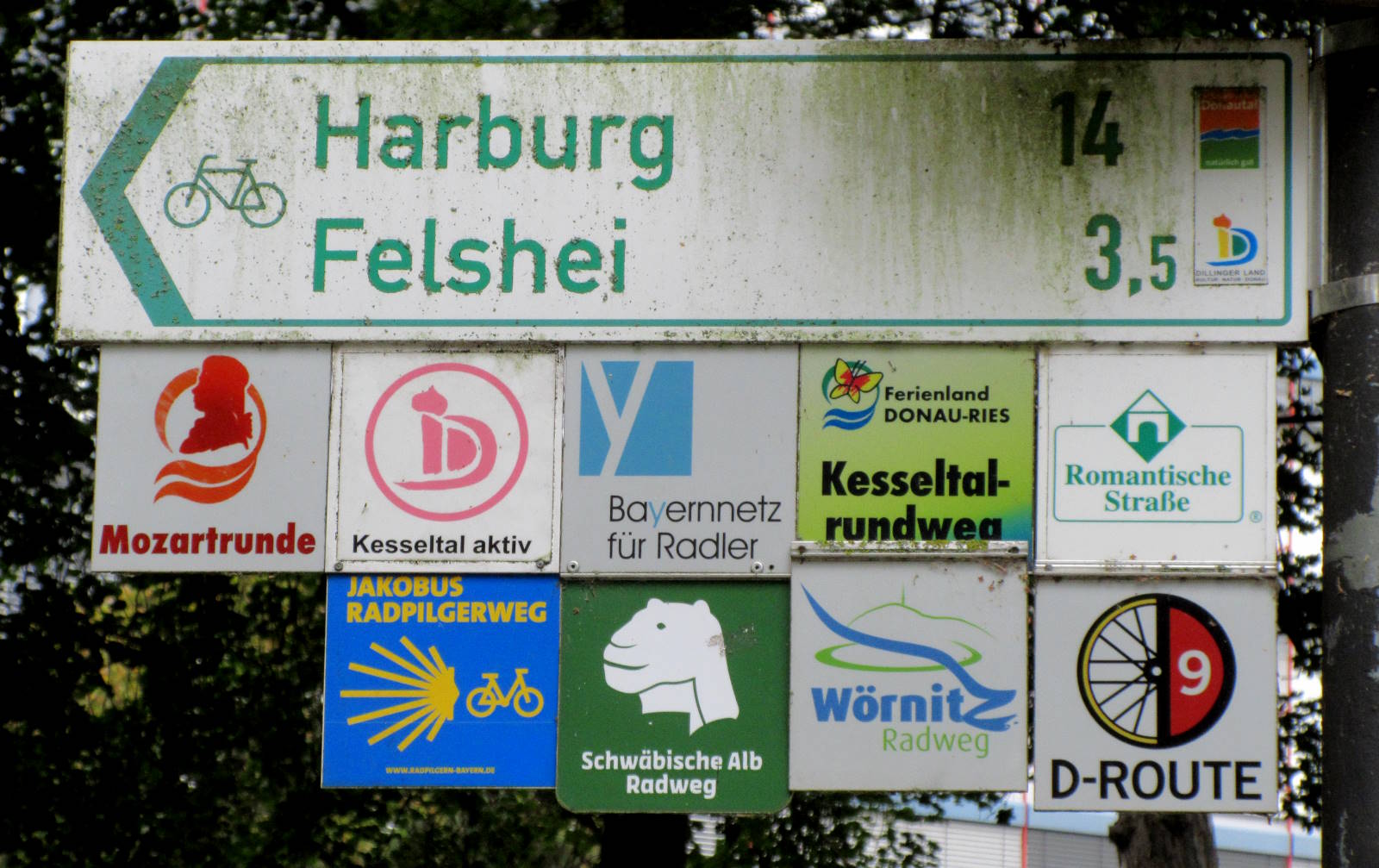 More good bahn paths took me to pleasant (and deserted) Harburg… and some roadside paths. The Romantic Road was devised in the 1950s to showcase historic southern German towns for motorists. The bike alternative came much later, when the roads had become too busy for pleasant cycling. (My partner – who is still my partner – gleefully rode it in the 1980s, when traffic was much lighter than today.)