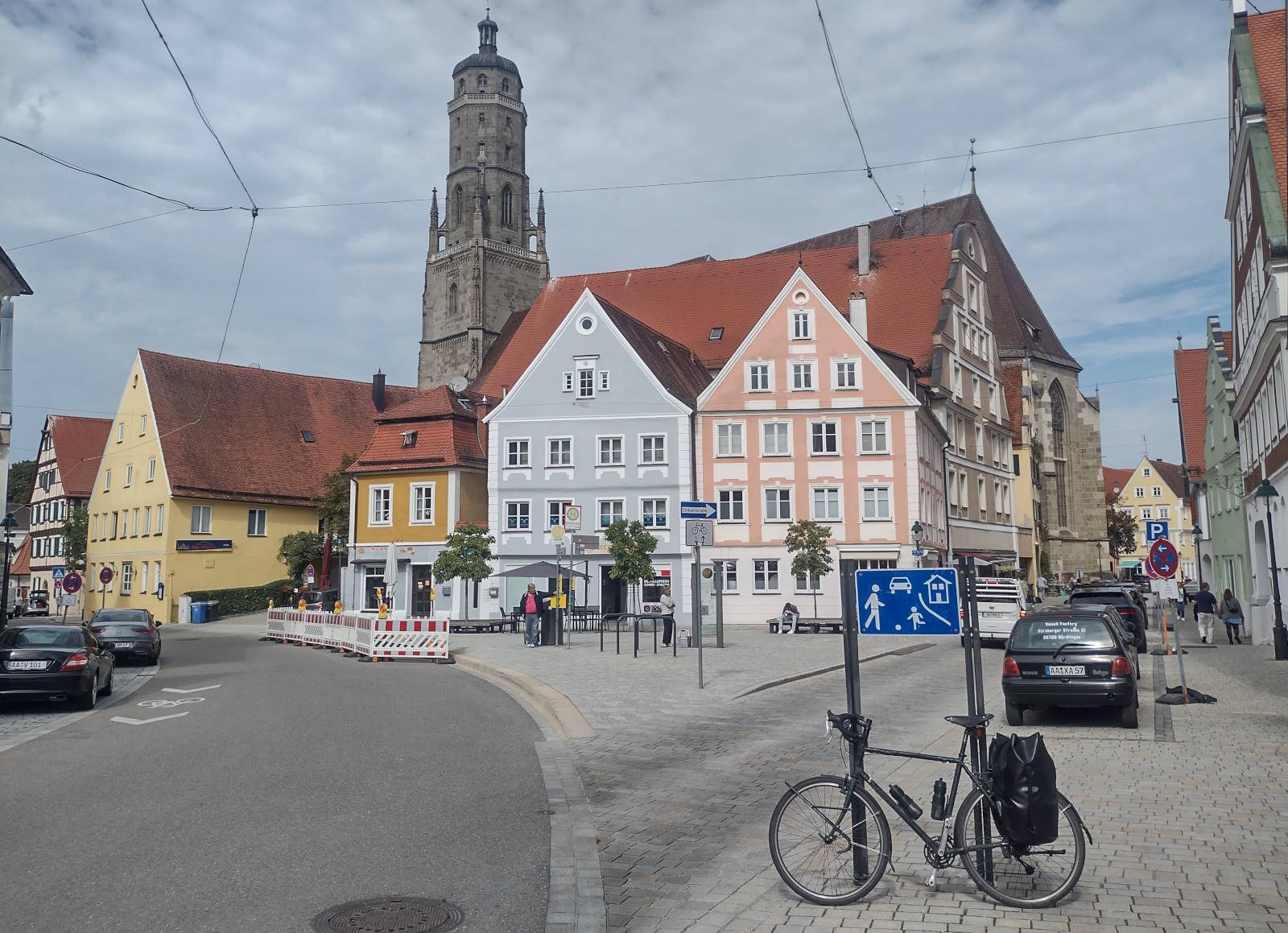 It was a bit drizzly as I got to Dinkelsbühl, my campsite target for tonight. I stocked up on items I was short of from another Rewe, such as beer and sausages and socks, and had a quick shufti round this famously photogenic Romantic town.
