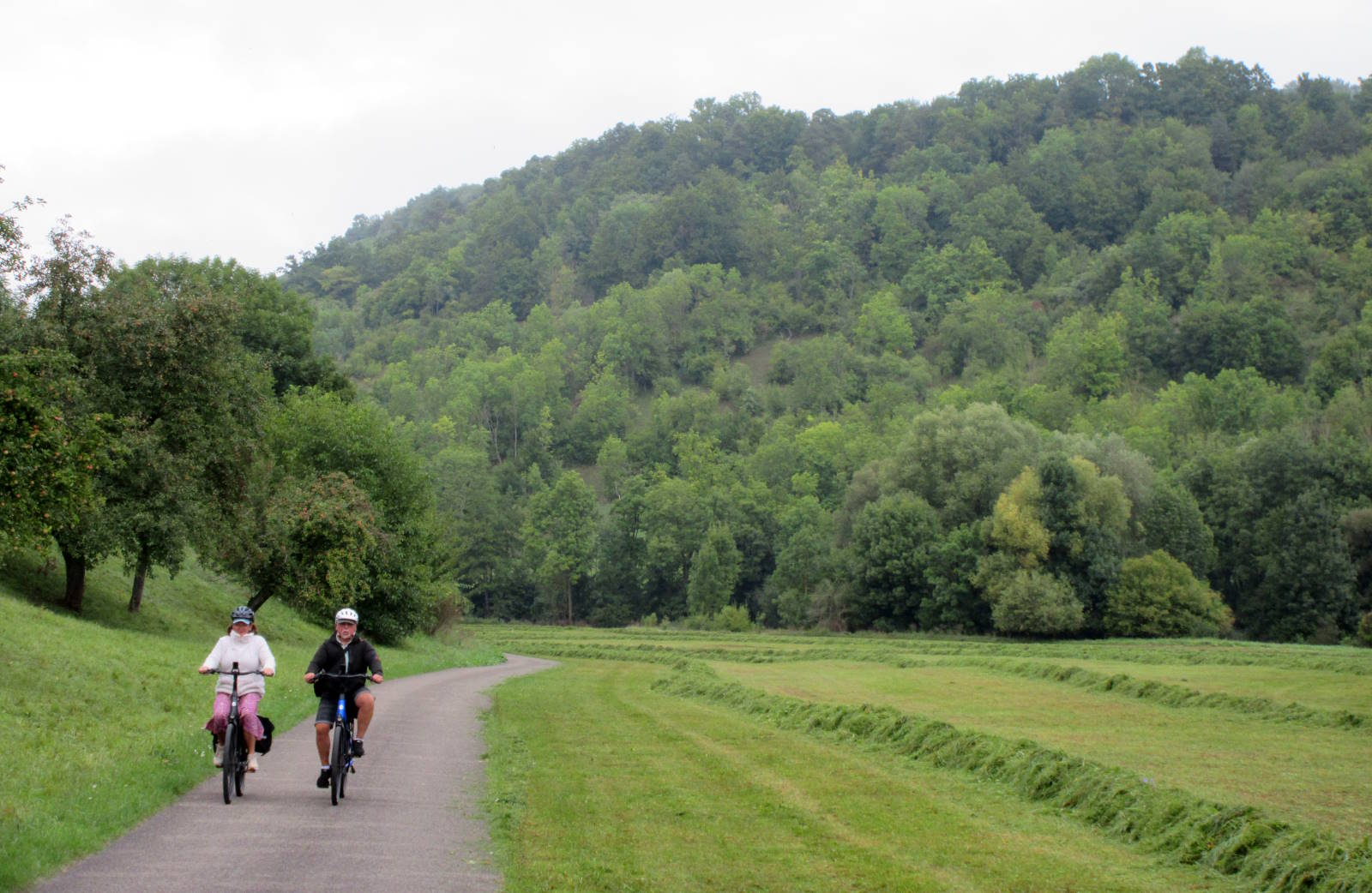 There was a procession of villages and small towns, and more scrumpable apple and pear trees. At Bieberehren I left the D9 route, and the Romantic Road, to join a railtrail that wound round and up the side of hill before eventually descending to Ochsenfurt.