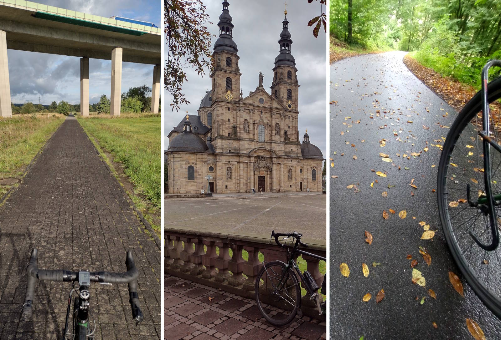 Today in three images: D9 route; Fulda Cathedral; leaves on the line