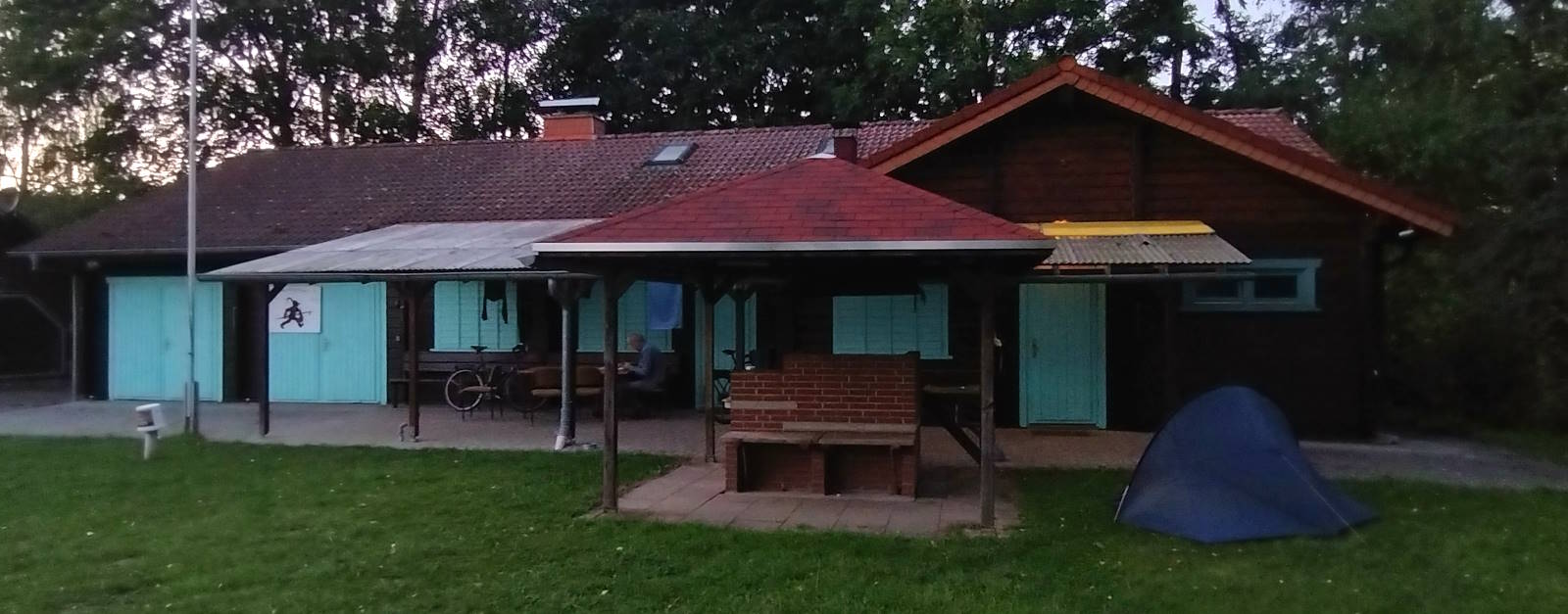 My campsite tonight was at a Canoe Club which, like many in Germany, provide tent space and clubhouse facilities to walkers and cyclists. It’s set up informally, by email or phone, rather than online. Around four, a friendly canoe club chap turned up to give me keys and show me round. For a bargain €12 I got a good pitch, a covered seating area, and use of the clubhouse’s kitchen, common room, shower block and – delightfully – bargain beer cupboard.