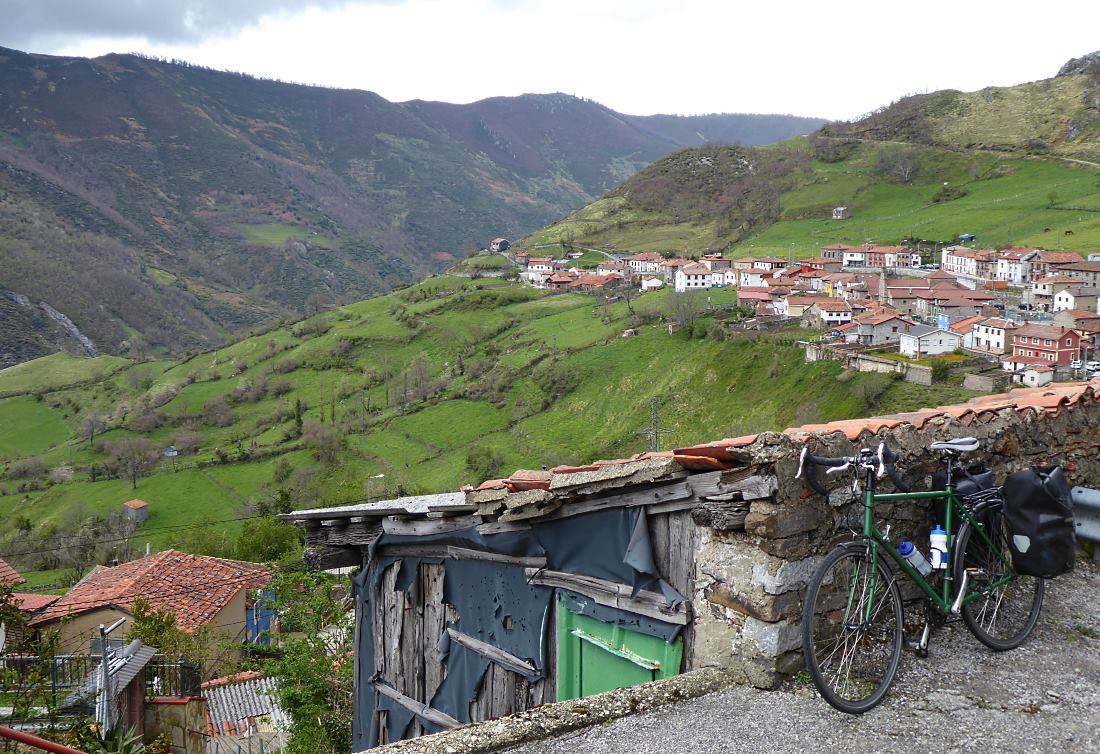 A tough day in prospect today, with plenty of climbing, and rain forecast. But, to compensate, we had the most spectacular scenery of the trip, and a unique Asturian experience at the end. And perhaps most importantly, a fine breakfast where we discovered yet again the delights of León’s custom of free tapas – in this case, cream cakes with our coffee. Anyway, the first few miles of side roads out of León made me feel right at home: damp grey views of steelworks and power stations (pic), reminiscent of my recent trips along Yorkshire’s River Don.