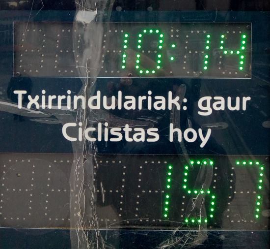 The look and feel of the Basque Country capital is rather different to that of a Spanish town, and it’s exciting to see all the signs (such as this cycle counter) in both Castilian and Basque, the mystery language isolate that evidently predates Indo-European.
