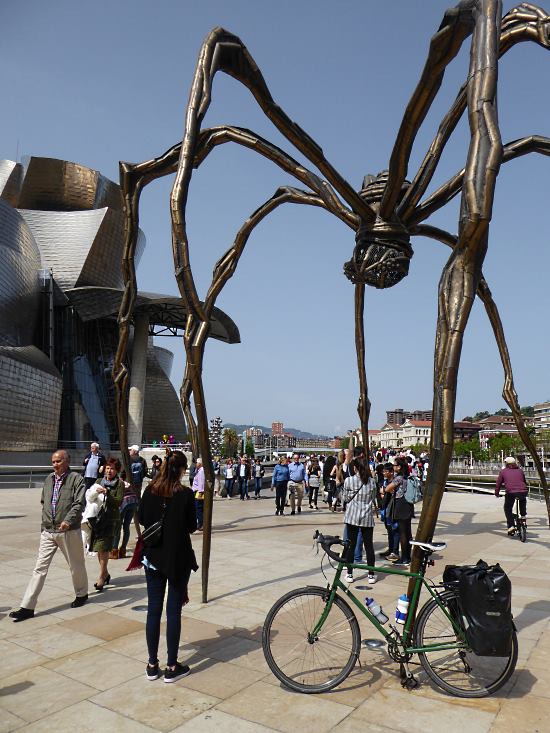 So, having crossed, I returned to Bilbao via quiet roads, and the riverside cycleway packed with joggers, walkers and cyclists (pic). The Basques seem quite an outdoor bunch.