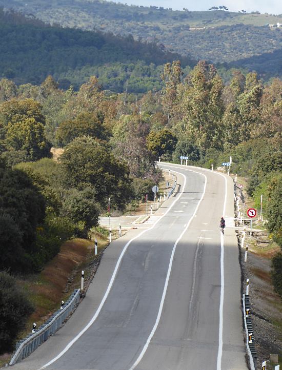 North of Seville we joined the southern end of the main road of the trip: the N630 (pic). This is the old Vía de la Plata, which will take us all the way to Oviedo. Well, our bikes will. And our legs might have something to do with it.