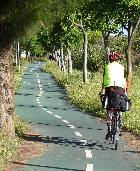 Anyway, this morning we checked out of our lovely Airbnb apartment in characterful Triana, with its vibrant bars and cafes, and headed north on Seville’s rather good network of cycleways (pic).