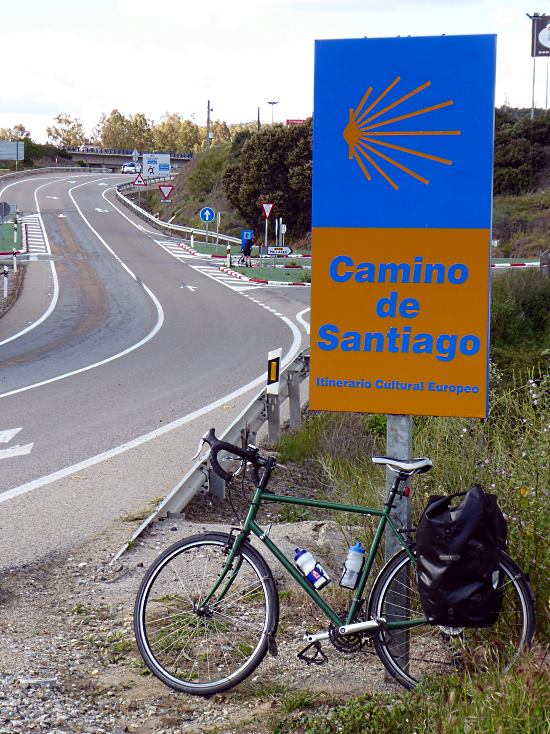 We’re solidly on one of the Caminos de Santiago (pic) – the aforesaid Vía de la Plata – and the hotel we’re staying in tonight, in Monesterio, is friendly towards bicigrinos: ‘bike pilgrims’ doing the penitent’s route to see St James’s holy relics in the great cathedral of Santiago de Compostela. (I cycled to it in 2011 by the better known Camino francés from Pamplona.)