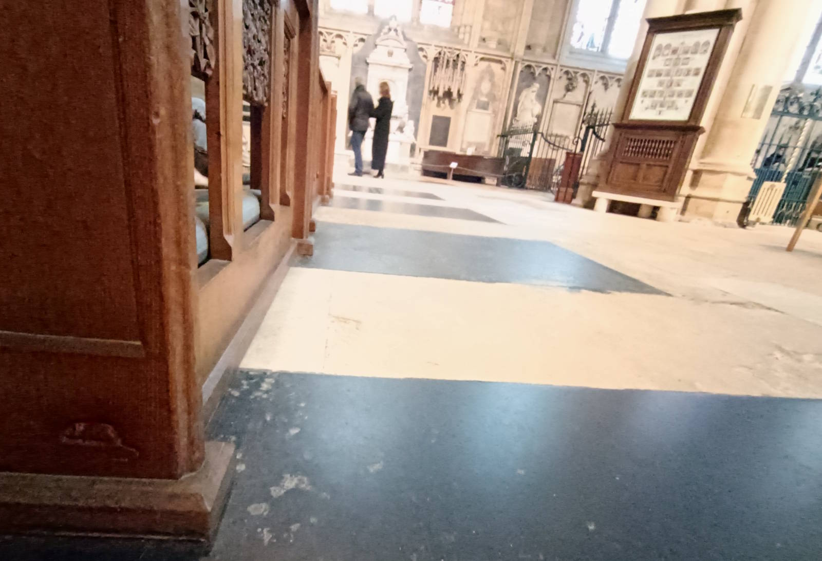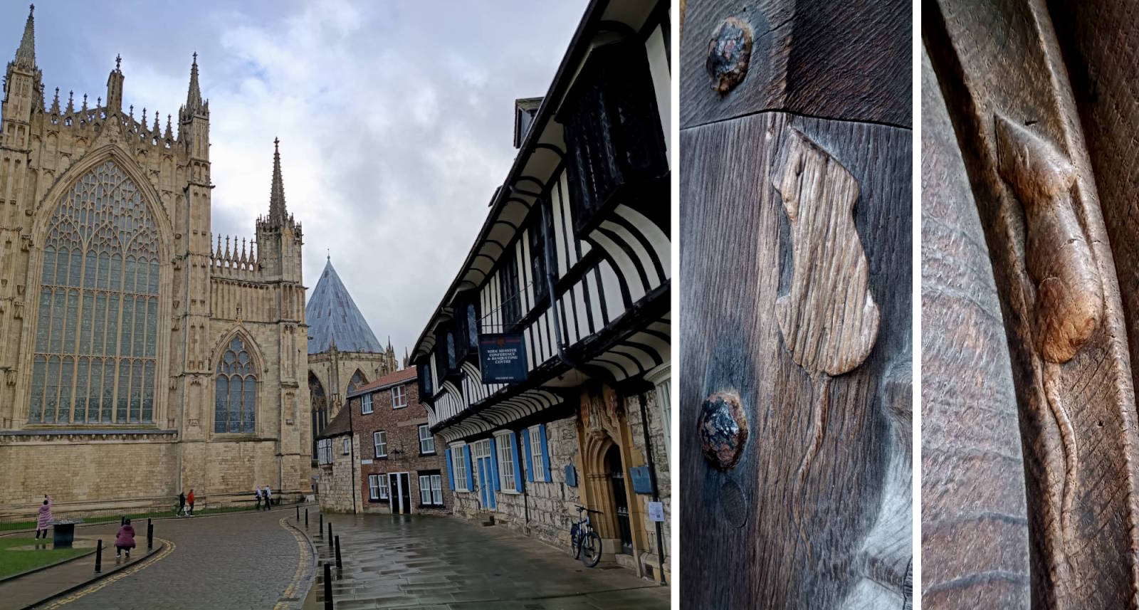 No, this isn’t some constituent of York University (which is perhaps surprisingly a 1960s creation). It’s an ancient part of the Minster which is now used for events and so on. The wooden door has two mice at about head-height, though the one on the left has evidently been chiselled off by a souvenir hunter. (Mice actually fashioned by Thompson himself fetch thousands at auction.)