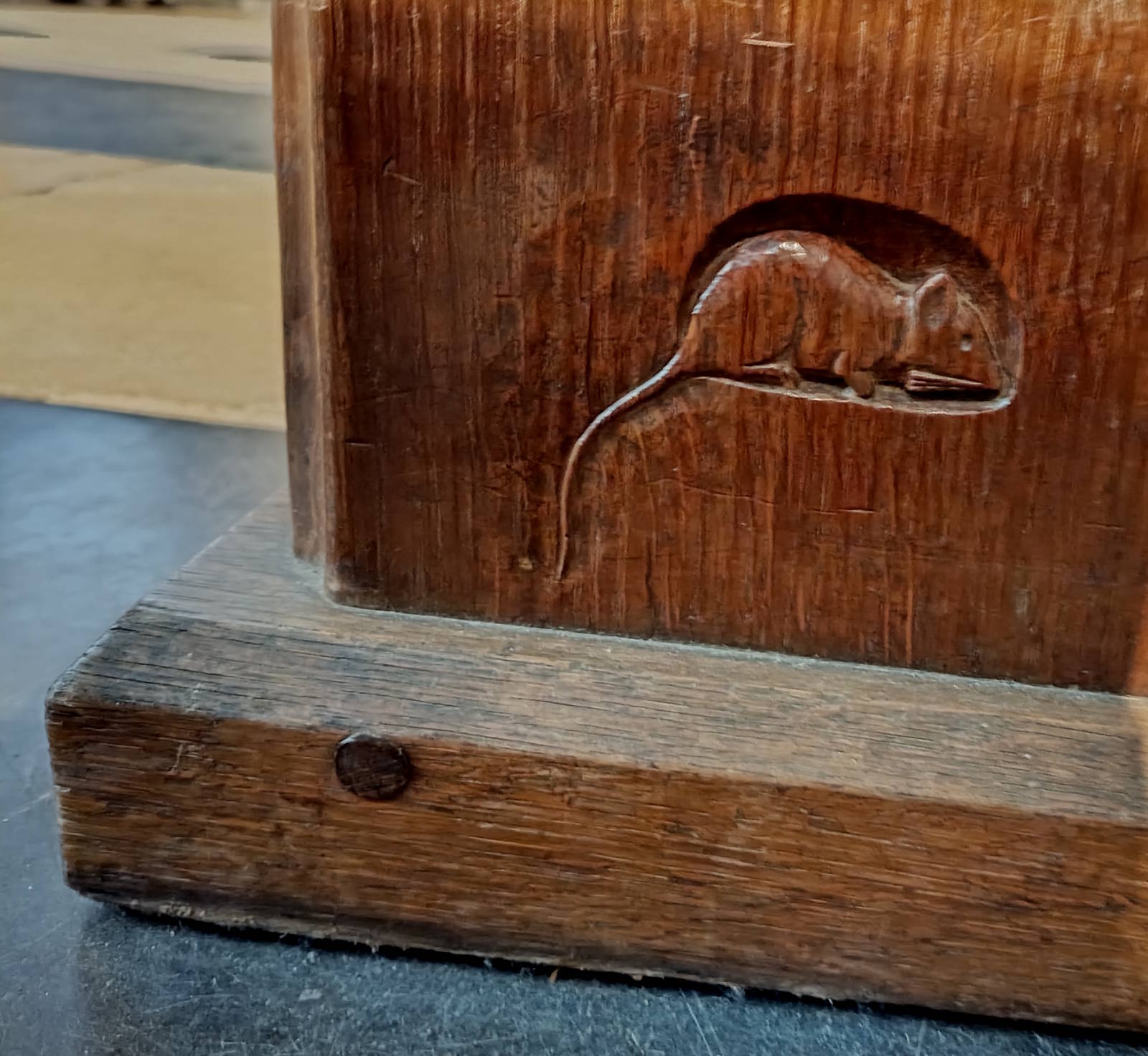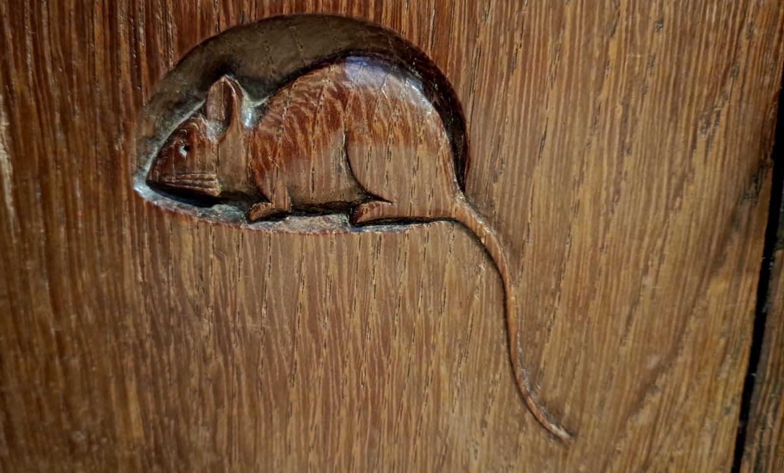 The workshop of Robert Thompson (1876–1955) of Kilburn, North Yorkshire, is famous for mice. Its wooden furniture often features as its standard symbol a life-size mouse, carved discreetly into the piece. Their products are often from oak and found in churches, and the cute rodents are a sly reference to woodworkers and artisans generally being poor as church mice. I think ‘artisan’ covers ‘cycling writer’ too.