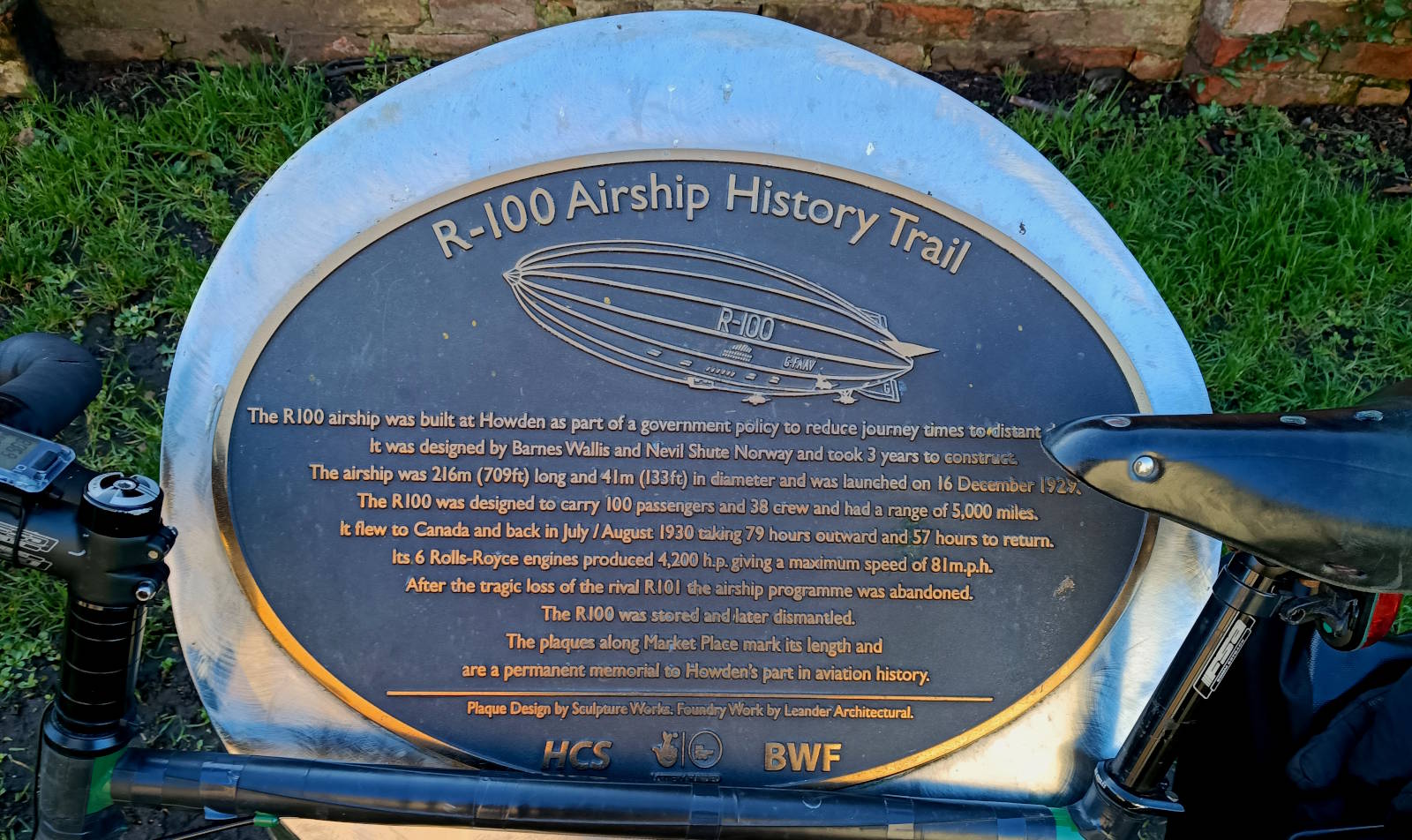Facing all that is the market square, which looked grand in the sun today. Leading off it is a path to the Ashes Park, and the town’s airship trail. It celebrates the fact that Howden was a boom town for airships in the 1920s. The R100 was built here with local labour, but the crash of its competitor the R101 suggested that huge bags of easily-buffeted, highly flammable gas might have safety implications, and airships rapidly fell out of favour.