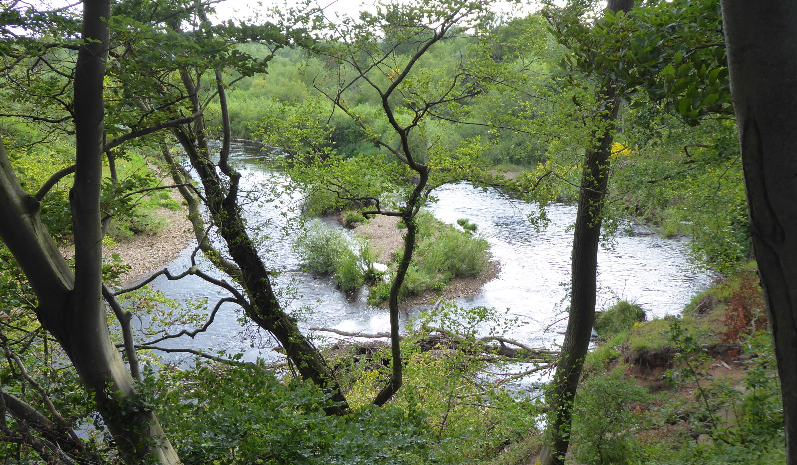 The scenery quietens down after Richmond, and the Swale placidly wanders along Vale of York farmland. It was nearly seven, thanks to my delayed start this morning, and I scuttled along quiet back lanes through little villages with occasional views of the waters (pic).