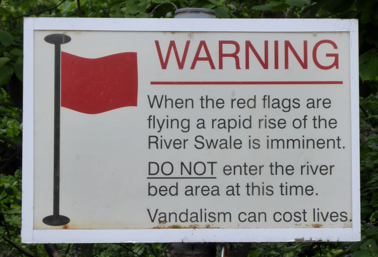 The sign (pic) reminded me of the Swale’s reputation as Britain’s fastest-to-spate river. It can rise metres in minutes. These days, evidently, it does so even more abruptly than a generation or two ago, when it only rose feet in minutes.